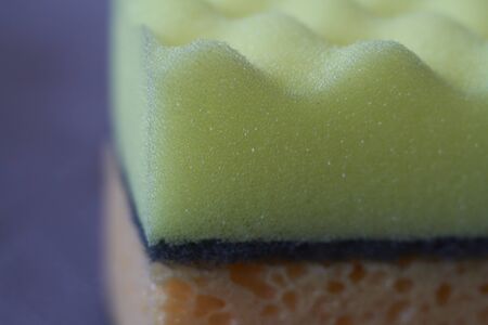 yellow dish washing sponge macro. bubbles, under water. porous macro sponge.