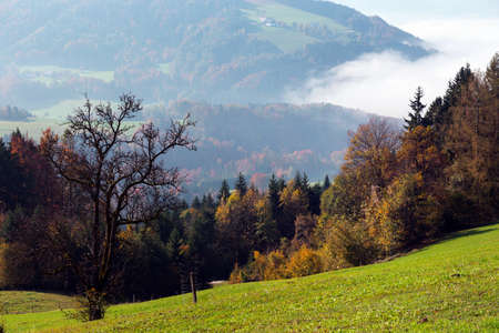 Beautiful landscape with a little fog in Austria country