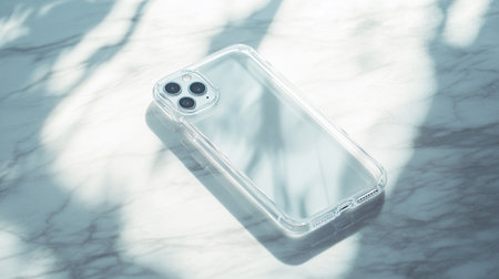 detail of an Apple Iphone 12 Pro Max face down on a flanked background with space for copy, showing its three camera lenses, horizontal