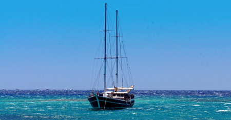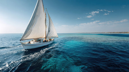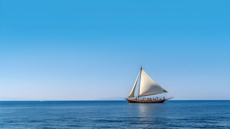 A serene sailboat glides effortlessly across the calm waters under a clear blue sky, capturing the essence of tranquility and adventure in nature.