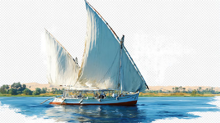 Sailing boat on the Nile river, Egypt. Digital painting.