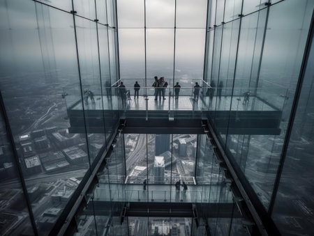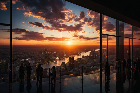 Silhouette of a group of people on a skyscraper