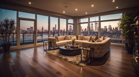 A luxurious penthouse apartment overlooking a bustling city skyline Ai generated