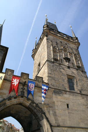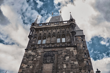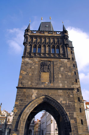 Detail of the tower of the Charles Bridge in Prague, Czech Republic
