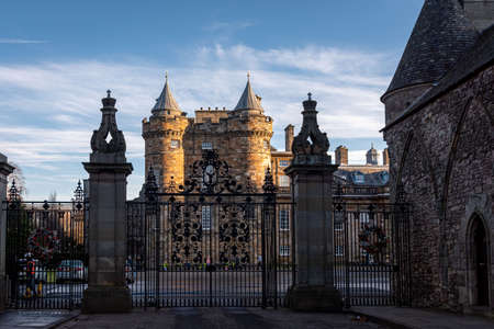 EDINBURGH, SCOTLAND DECEMBER 14, 2018: Magnificent entrance gate to the Holyrood Palace