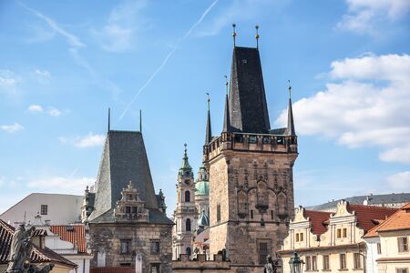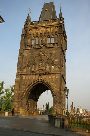 A view of the gate of Charles Bridge in Prague, Czech Republic