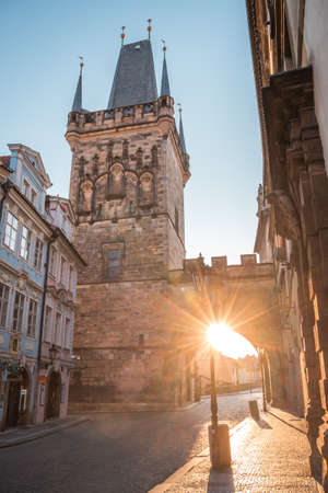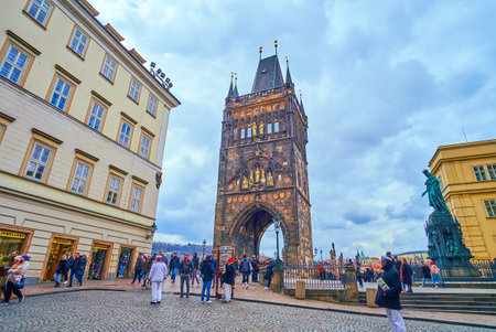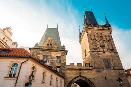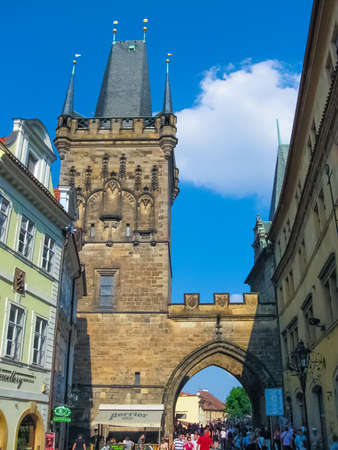 historical Lesser Town Bridge Tower in Prague, Czech Republic