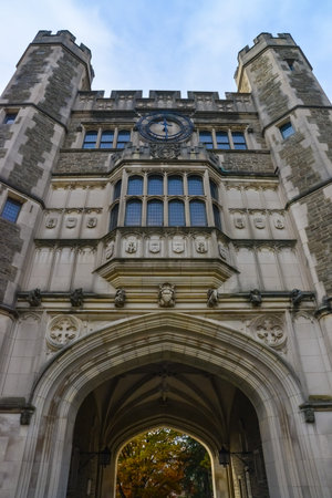 PRINCETON, NJ USA - NOVENBER 12, 2019: University building and architectural design elements on the walls at Princeton University. New jersey