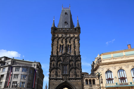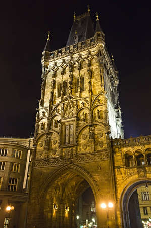 Prague Powder Tower (Prasna Brama). Medieval Gothic defensive tower in Prague city, Czech Republic.