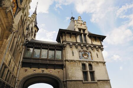 Walls of Steen castle in Antwerp in clear summer day with clouds