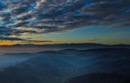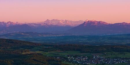 sunset view from uetliberg with swiss alps, zürich, switzerland