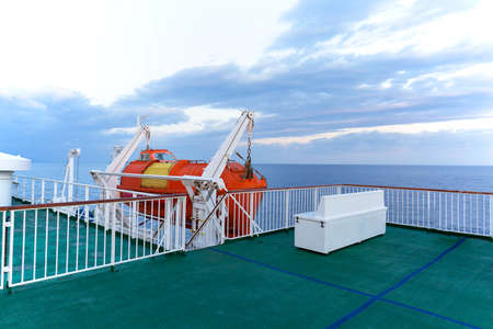 A lifeboat on board a passenger ferry connecting the island of Vis and Split, Vis, Croatia
