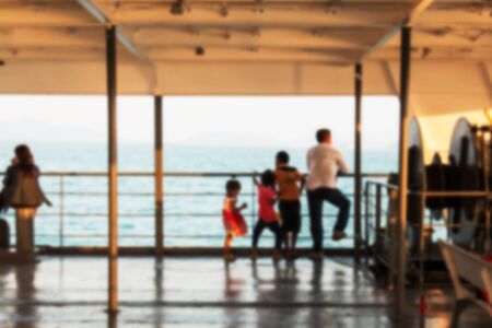Surat Thai, Thailand - January 24, 2018: Tourists traveling on a ferry to the Koh Samui and Koh Phangan islands. Man standing on the deck