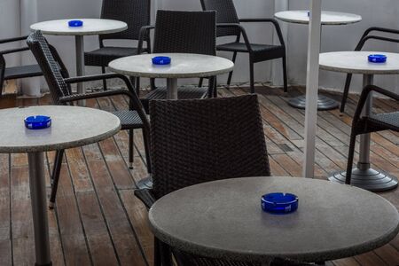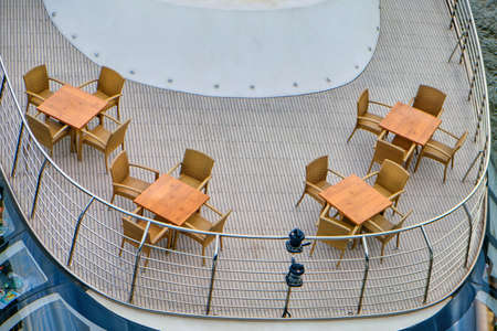 Abandoned Cruise Ship Deck with Empty Deckchairs. Crisis in Travel Industry Economical Concept.
