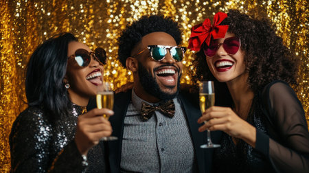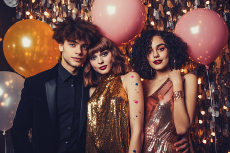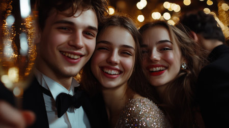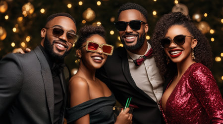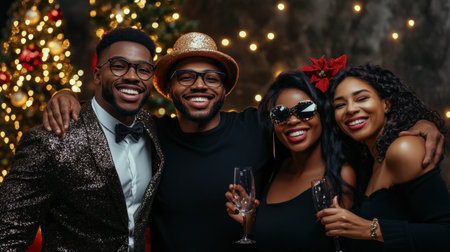 Happy smiling people have fun at a New Year's Eve party. Generative AI.