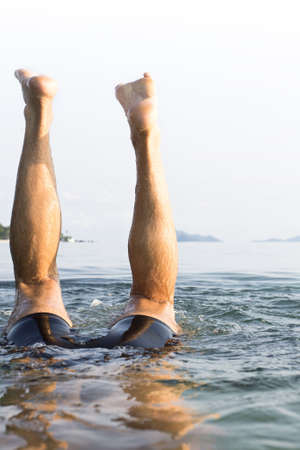 A European man diving underwater at Koh Mak, Trat, Thailand