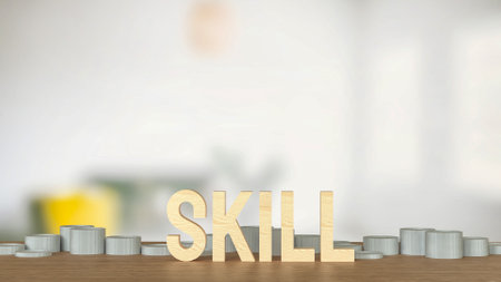 Skill text and coins for training or learn concept 3d rendering.
