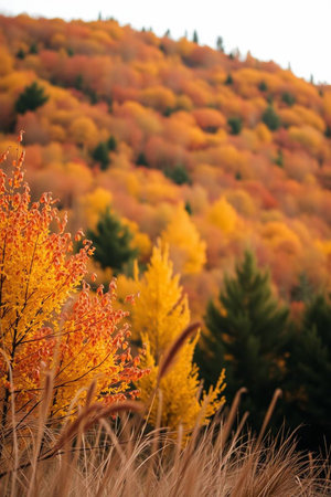 Breathtaking autumn landscape with vibrant trees, colorful leaves, and tranquil nature