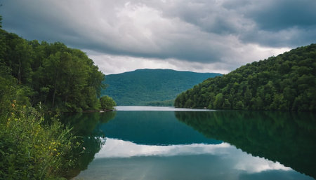 Beautiful landscape of a lake in the mountains under the cloudy sky