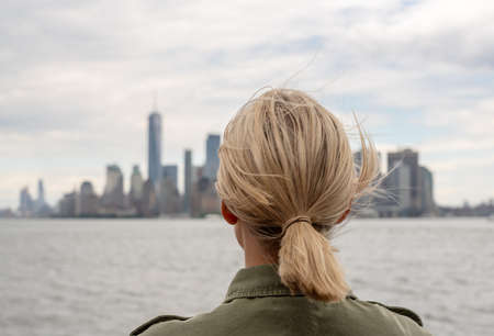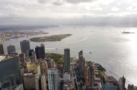 Tourist binoculars overlooking the Manhattan skyline in New York City at the morning, USA, United States of America