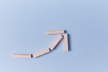 Top view wooden blocks set to growth graph with up arrow. Concept for money and success business.