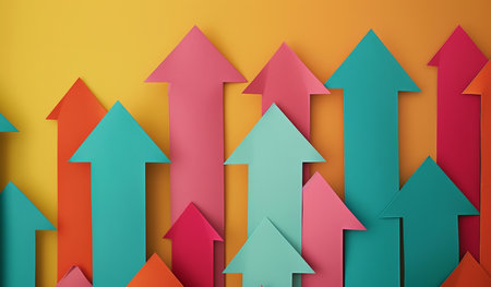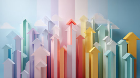 Colorful arrows point upward on a pastel backdrop, symbolizing growth and progress