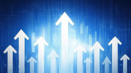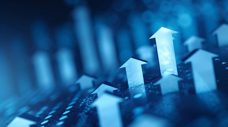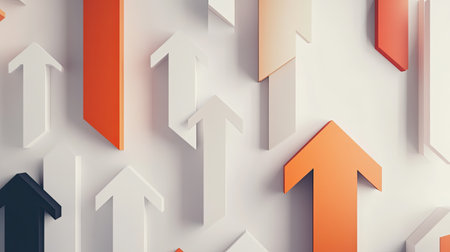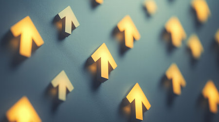 Digital composition featuring upward arrows, symbolizing growth and success in a modern business landscape, perfect for presentations and marketing materials.