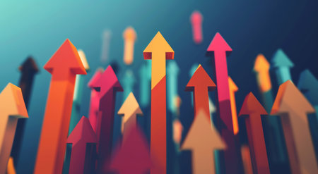 Vibrant arrows in various colors represent growth, direction, and progress. Ideal for concepts of success and motivation.