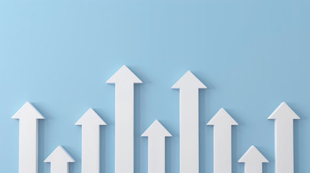 A collection of 3D arrows moving upward, symbolizing growth and profit gains. The clean, minimal background offers ample copy space for business presentations.