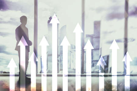 Growth up arrows on futuristic abstract background. Investing or savings to growth up money or business concept