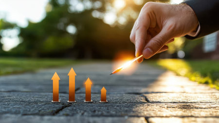 Colorful arrows growing with plants symbolizing growth, success, and progress in business and finance. Abstract concept for development and opportunity.