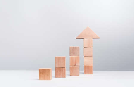 Growth progress concept with arrows. Growing graph of wooden blocks.