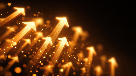 Image of multiple up arrows over blurred vehicles moving on street in city. Digital composite, multiple exposure, direction, growth, defocused, abstract and transportation concept.