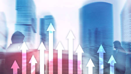 Growth up arrows on futuristic abstract background. Investing or savings to growth up money or business concept