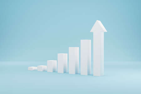 Arrow graph sign growth step staircase moving up on light blue background. Business development to success and growing annual revenue growth concept. 3d illustration