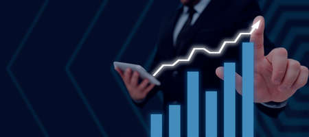 Business growth and financial investment concept. Businessman hand drawing virtual screen Graph analysis of business growth and investment, strategic planning to increase sales profits.