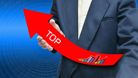 Businessman pointing arrow graph corporate future growth plan. Concept of business growth.