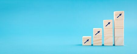 Wood block with arrow up icon. Business concept growth success process.