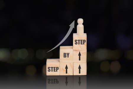 colored wooden boards with the words step by step and rising arrows