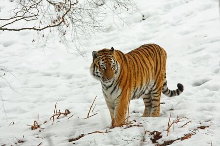 Siberian Tiger in the snow, Panthera tigris altaica