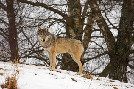 Bobcat in the winter forest. Wildlife scene from nature. Lynx in winter forest