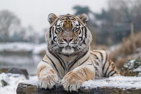 portrait of a tiger in winter.