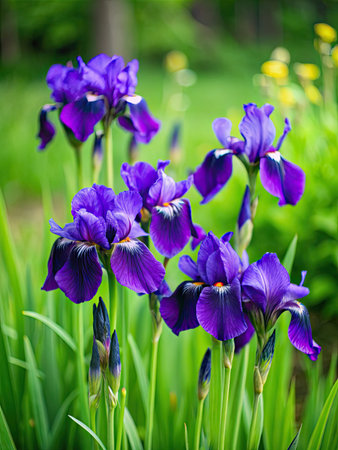 Purple iris flowers in the garden. Shallow depth of field
