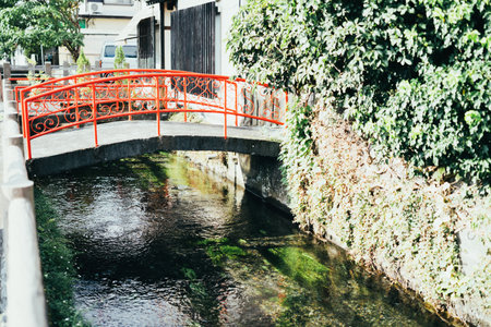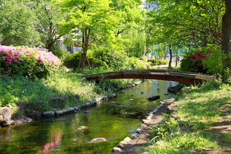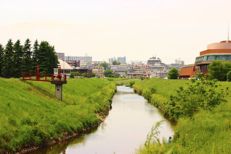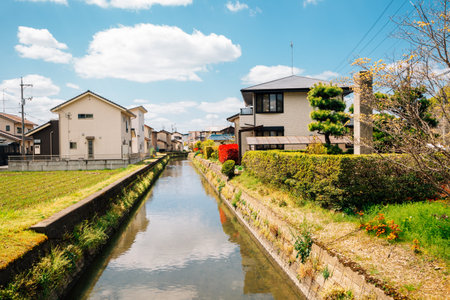 Water canal in Japan city, Beautiful landscape of Japanese public irrigation canal.