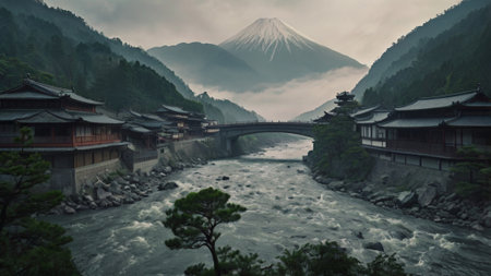 Landscape Mountain in japan. Generative AI