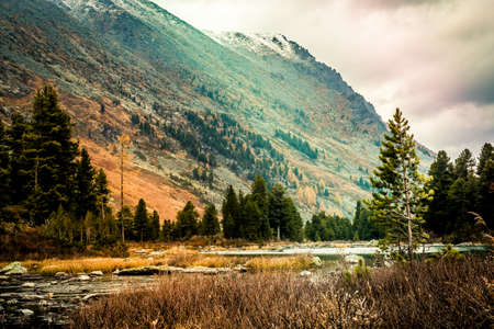 Mountain turquoise river Katun in the Altai Republic in Russia