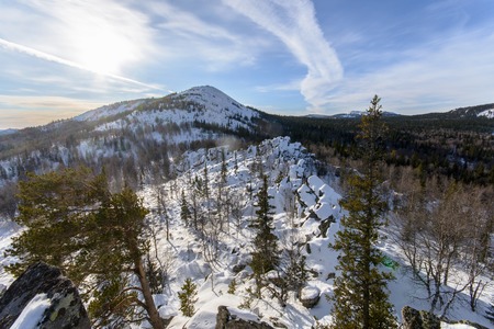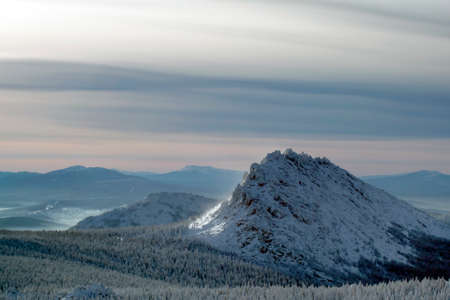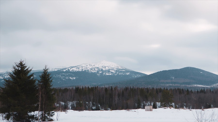 Beautiful Snow Highland Landscape View from the top of Mountain at winter, Russia, Ural