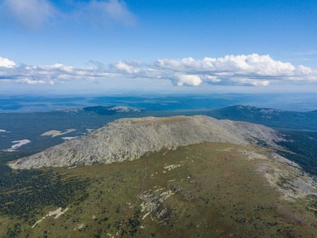 Mountain landscape in the vicinity of Mount Iremel. Aerial view