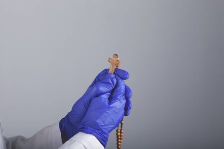 The crucifix is in the hands of a man who is praying for the blessing of his god with faith.