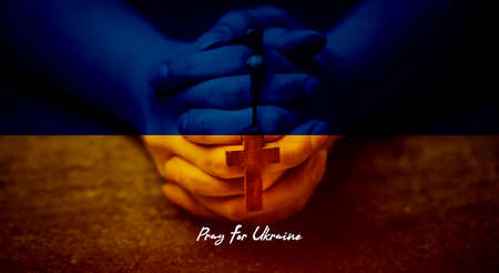 Pray for Ukraine concept background. National Ukrainian flag. Concept symbol of help support and no war in the country of Ukraine.